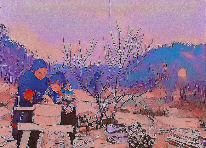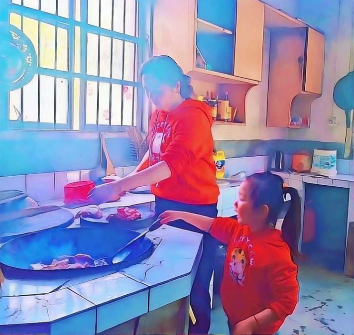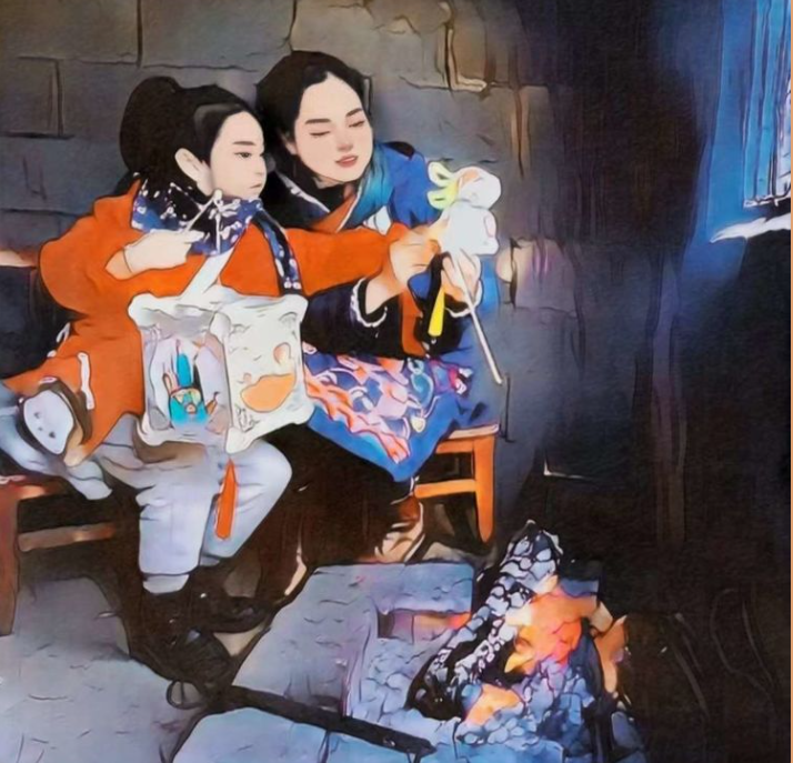 我很喜欢老家的火塘。熊熊的火焰闪烁着,把温暖传向四面八方。一家人围坐在火塘边,喝着茶,嗑着瓜子,聊聊天,这是多么温馨的画面啊!妈妈说,她小时候,除夕晚上,一家人就坐在火塘边,烤着火守岁。听爷爷说关于“年”的故事,故事说完我们就给爷爷奶奶磕头,他们就从口袋里拿出红包啦,这可是我们最开心的时刻,有压岁钱啦!火光跳跃着,淡淡的烟火味儿漂浮着,吊罐里的水冒着热气,梁上的腊肉香气四溢……这大概就是妈妈所说的城里人羡慕的人间烟火气吧。