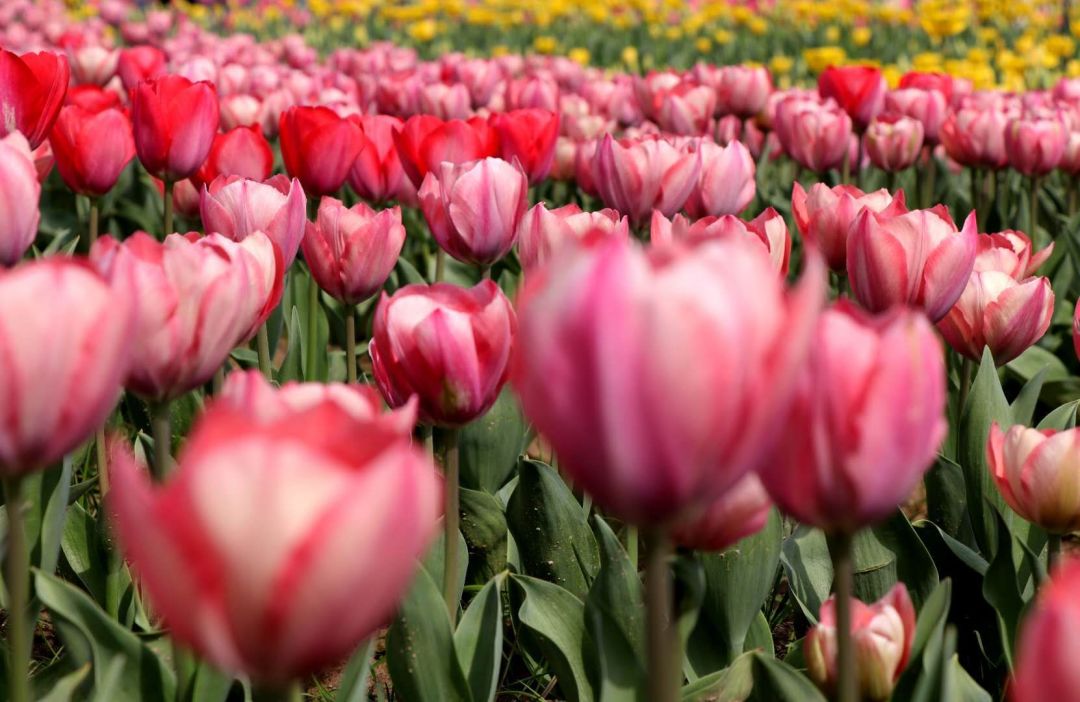 每当三月暖风拂面、春回大地之时,热烈的郁金香便会在一夜之间竞相绽放,在幽静的山谷里汇成一片热情奔放的郁金香花海!密密麻麻挤满山间谷地的郁金香花海,一朵朵、一团团、一簇簇、一片片……宛如鲜花的海洋!娇艳欲滴的郁金香花海与隽山秀水,共同拼凑出一幅春回大地的绚美画卷。