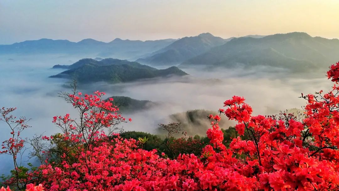 摸云山上的映山红面积有千亩以上,摸云尖映山红集中连片,满山红遍,灿若云霞,视野开阔,极具视觉冲击力。