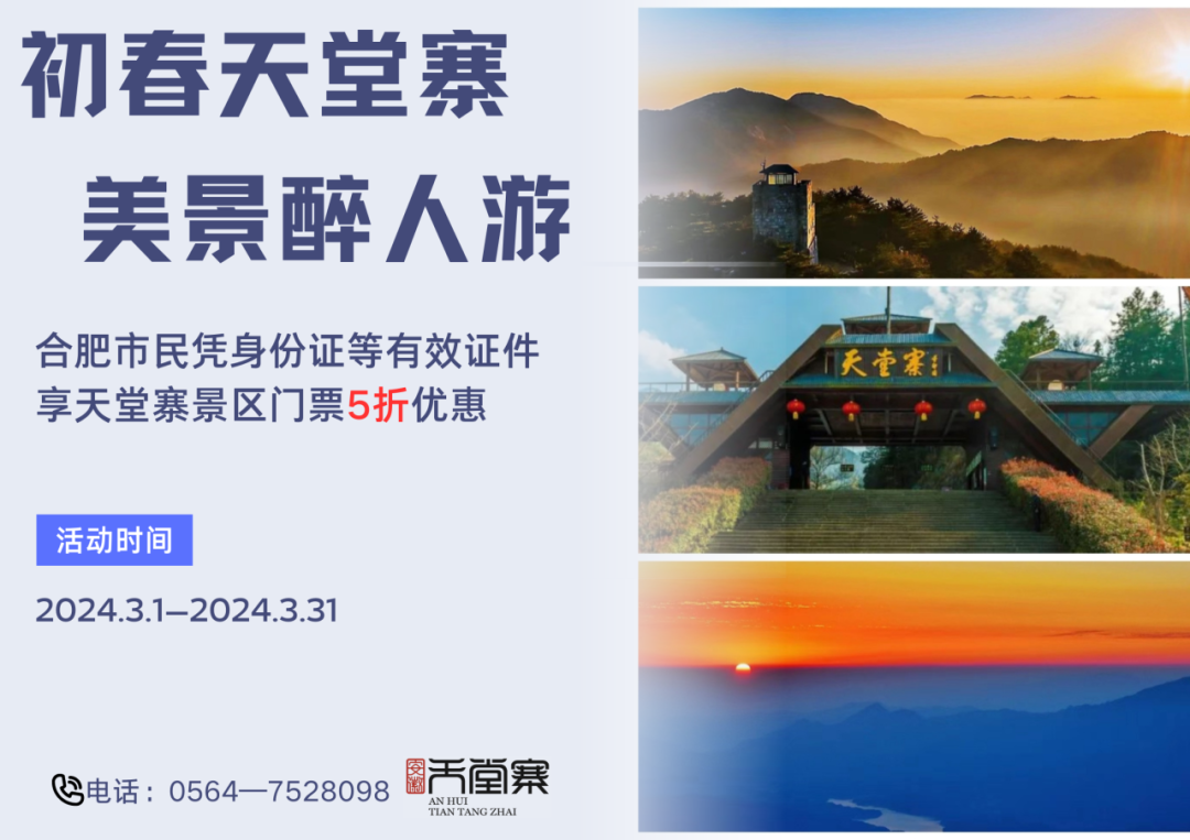 春暖女神季,惠游天堂寨 编辑:汤晓雪 来源:天堂寨景区 浏览次数: 次 发布时间:2024-03-07 16:17:54 【字体:小 大】 03.08GODDESS'SDAYLIVE UP TO THE GLORY OF YOUTHGODDESS'S DAY女神“价”临,男神“价”到三八女神节天堂寨景区准备了一份“厚礼”献给值得被宠爱的你赶紧来签收一下致最美的你3月7日至3月10日天堂寨景区对所有女性游客免门票愿岁月精致我们都能活成女神天堂寨的诗意画卷正在徐徐展开满山风情,从未媚俗一山生灵,繁衍不息愿每一位披荆斩棘的女神都能在天堂寨收获无限的爱与幸运唯有大自然给的“惊喜”才能配得上每一位独一无二的女神天堂寨景区愿您:历尽山河,觉得人间值得阳春三月天堂寨景区也给合肥市民送来了福利优惠内容:合肥籍居民(凭身份证)、长期居住合肥市居民(凭居住证或至少连续1年以上缴纳社保流水证明)、在合肥市就读学生(凭学生证)享受景区门票半价优惠50元/人。3·8妇女节三月的春风暖阳唯美了天堂寨的碧空云海吹绿了天堂寨的摇曳生姿迸发了天堂寨的朝气蓬勃登高、踏春、赏景才是女神节的正确打开方式天堂寨景区诚意满满,恭迎各路女神驾到 扫一扫在手机打开当前页 【打印正文】 上一篇:春回大别山,邀您来赏花~ [ 2024-03-06 ] 下一篇:“春游江淮 请来六安” 六安向您发出春天的邀请函 [ 2024-03-08 ]