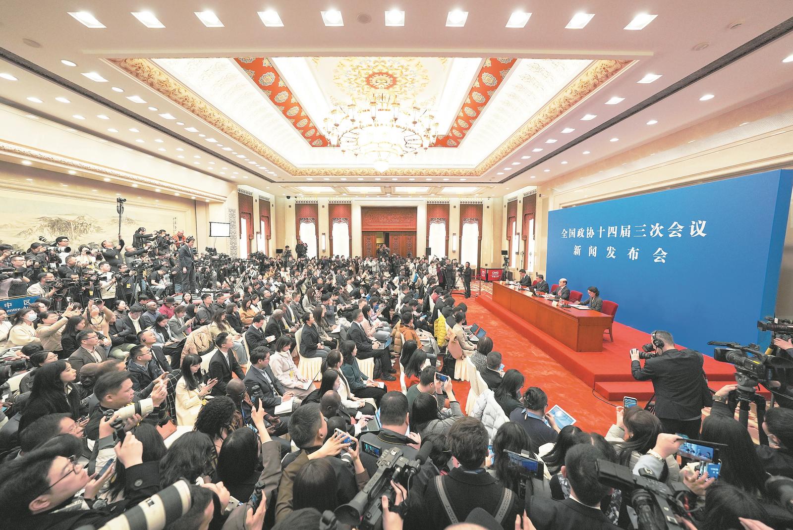 3月3日,全国政协十四届三次会议新闻发布会在北京人民大会堂举行。大会新闻发言人刘结一向中外媒体介绍本次大会有关情况并回答记者提问。新华社记者 才扬 摄 全国政协十四届三次会议新闻发布会3月3日下午在人民大会堂举行。大会新闻发言人刘结一宣布,全国政协十四届三...